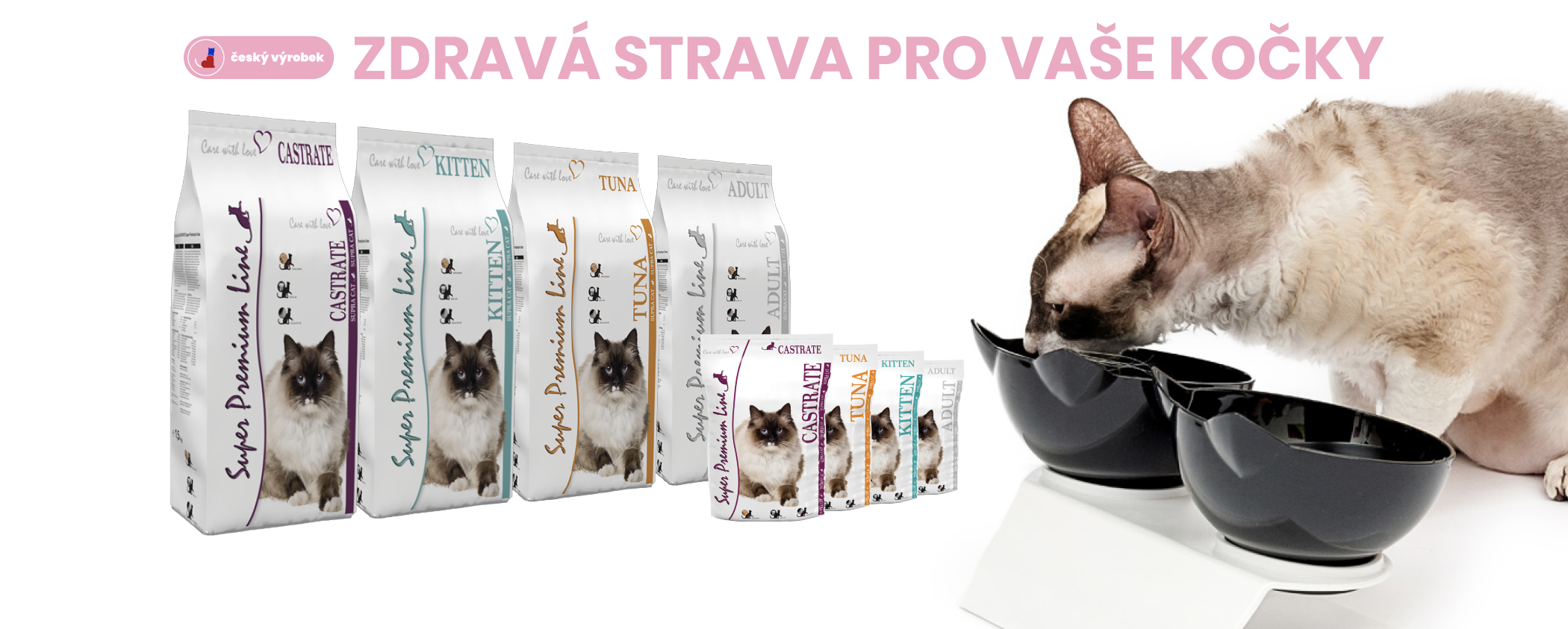 Všechna nabízená vysoce kvalitní výběrová krmiva pro kočky jsou vyrobena v ČR firmou Delikan Supra Cat. Kvalita surovin a nízký obsah popela z nich činí jedna z nejlepších a nejzdravějších krmiv na českém trhu.