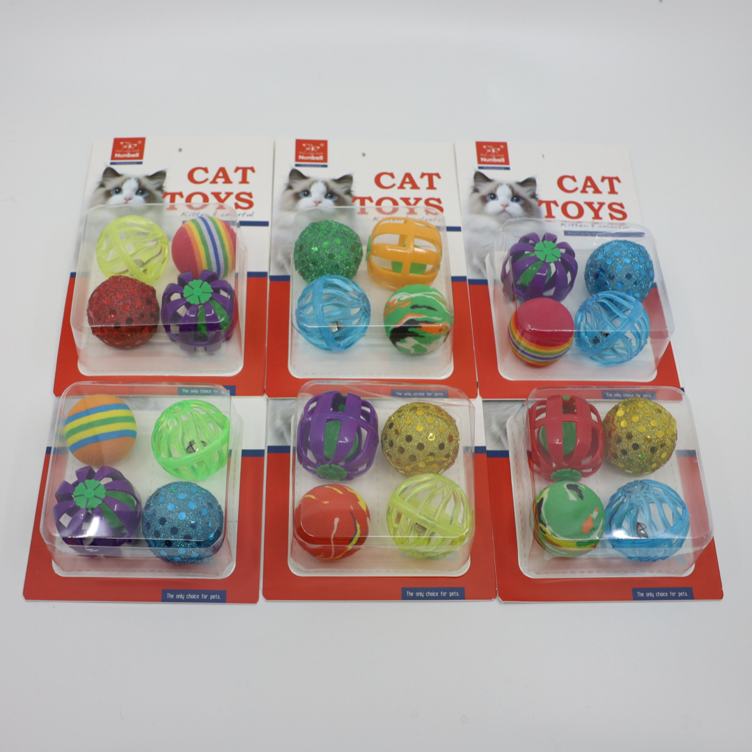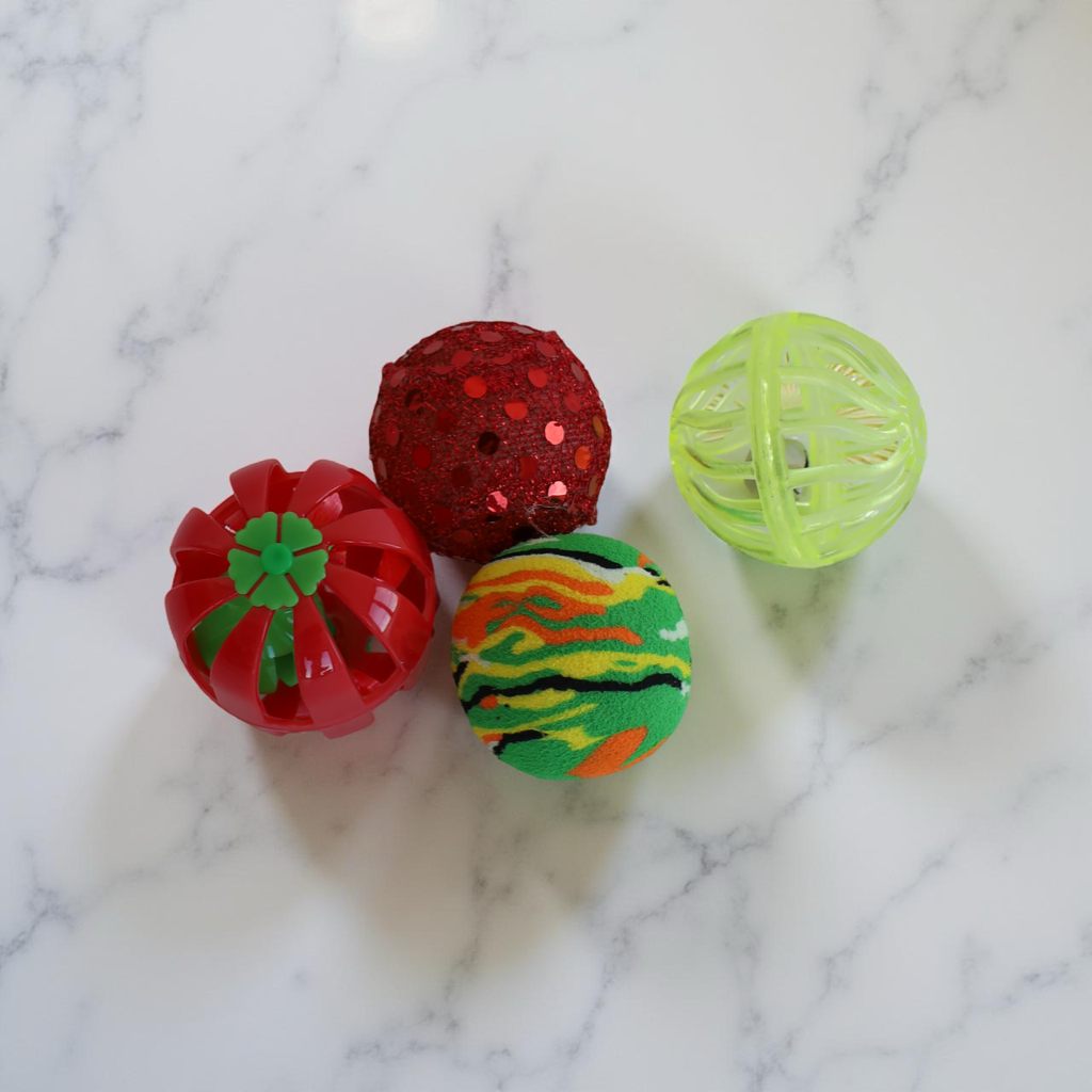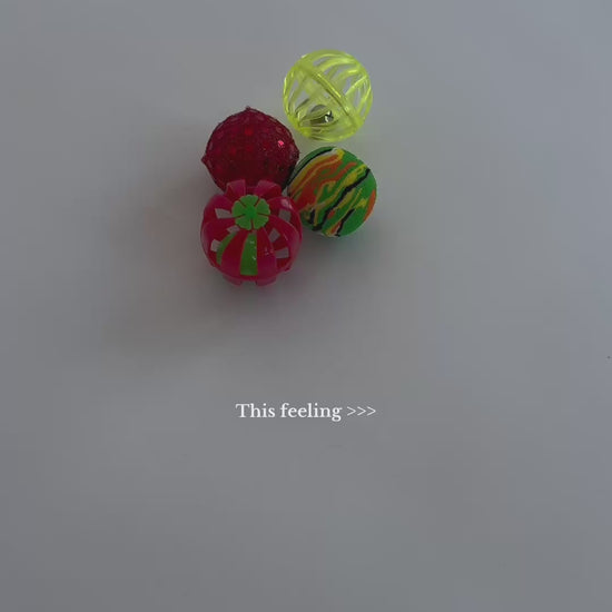 Čtyři míčky, čtyřnásobná dávka zábavy! Každý jiný, každý láká k lovu. Barevná sada, která zabaví i tu nejroztomilejší lenošku na gauči.