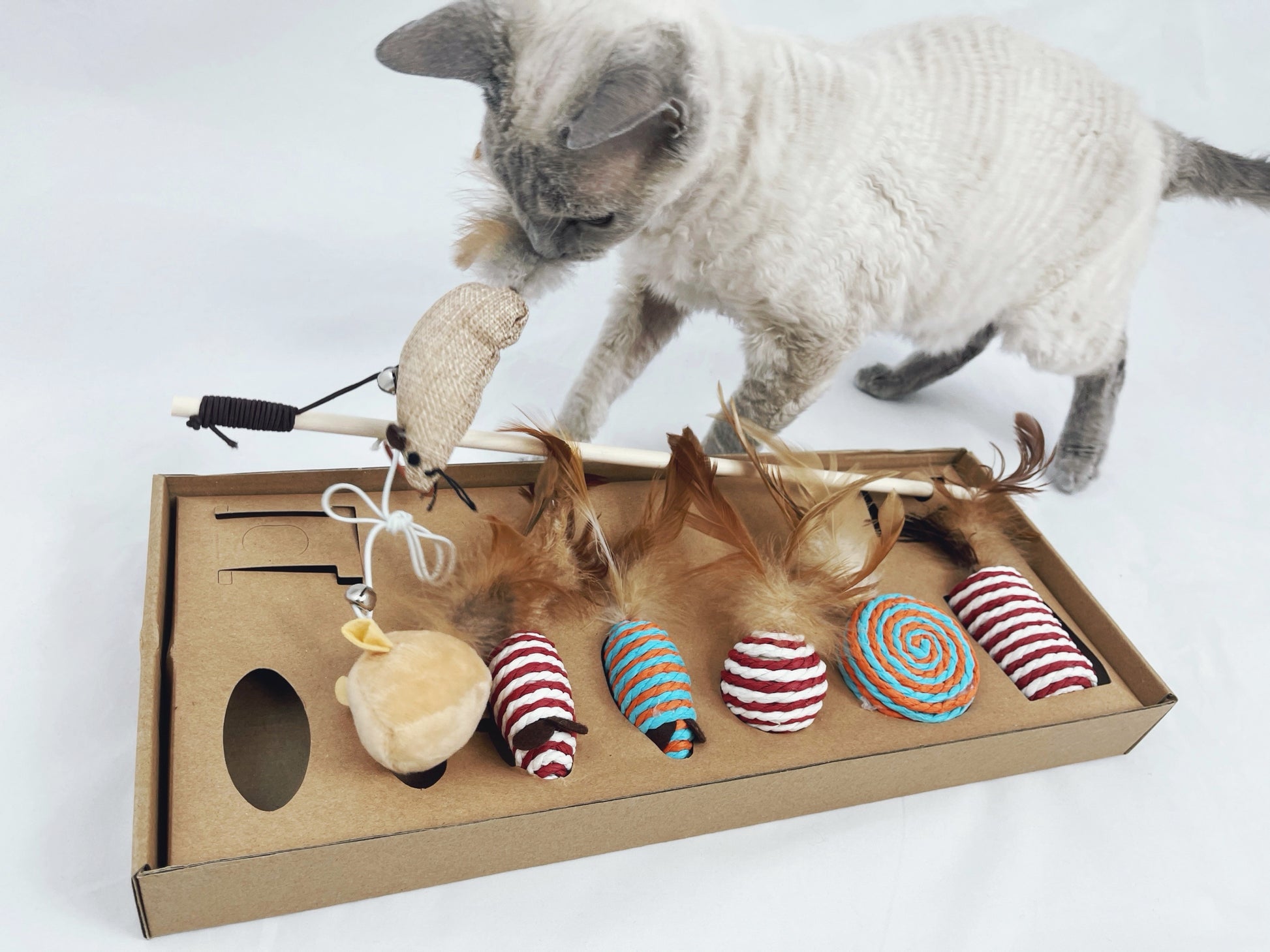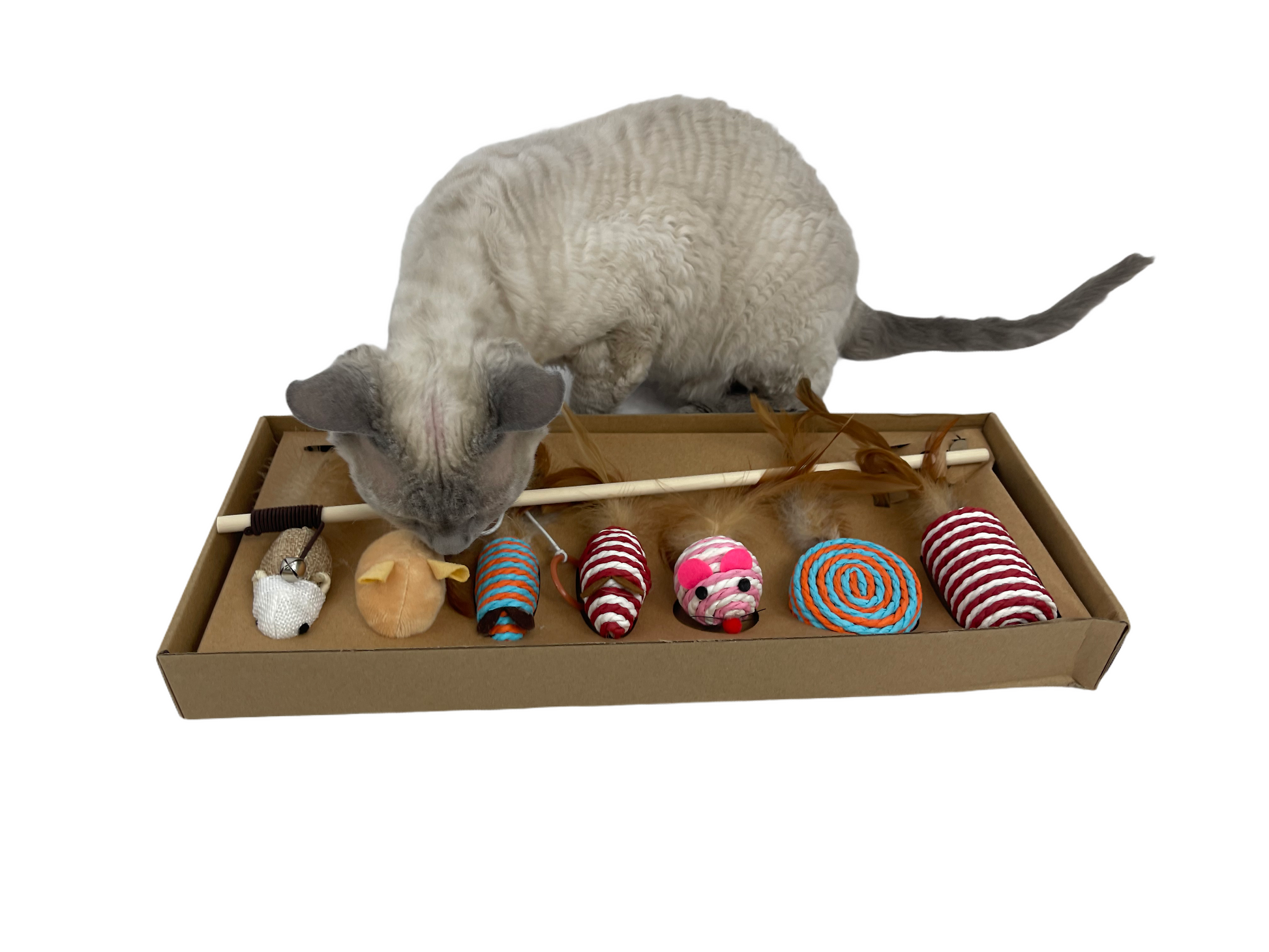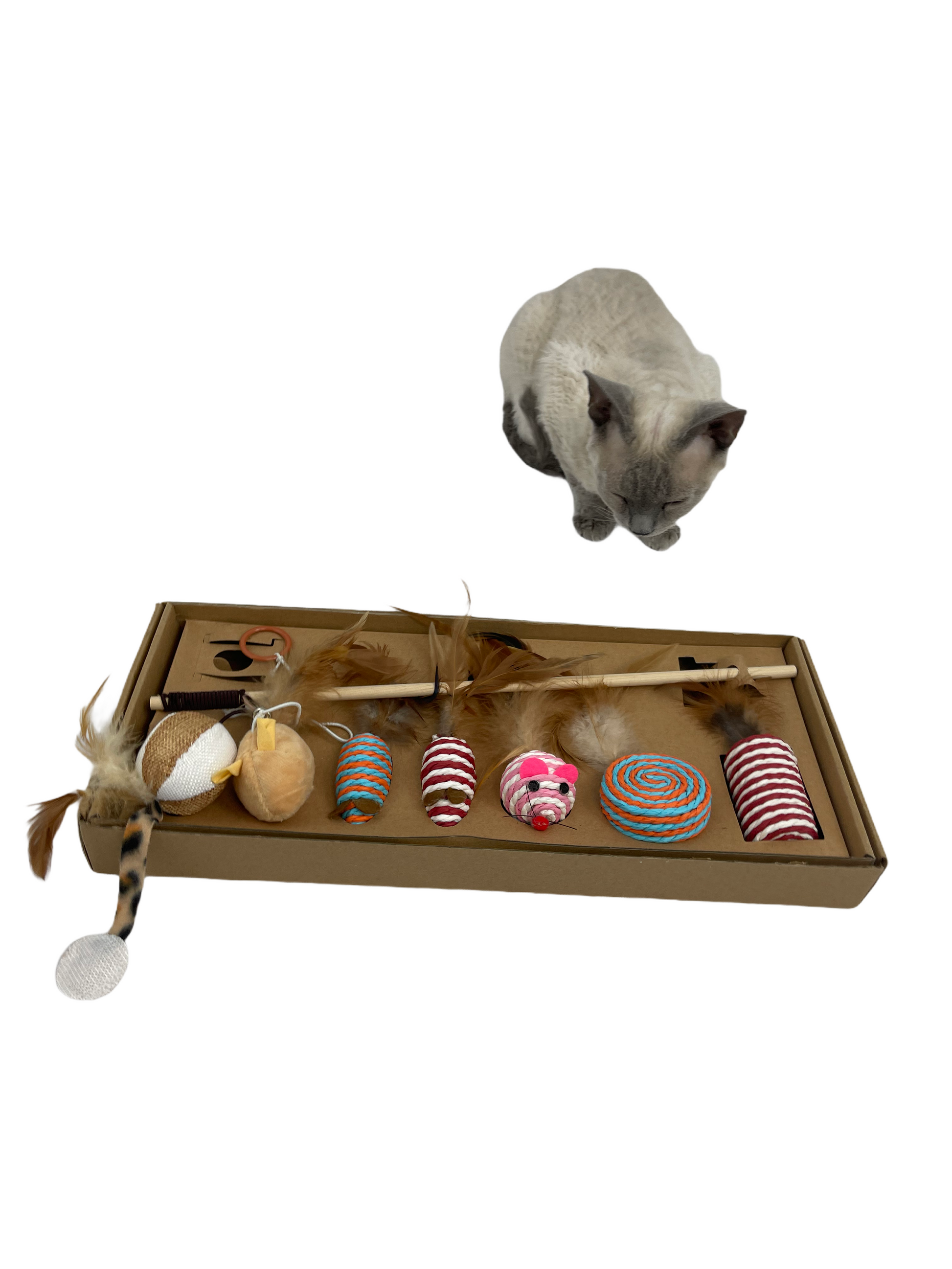 Plastů už bylo dost. Chcete svému mazlíčkovi udělat radost? Vyzkoušejte naší dárkovou sadu pro kočičky vyrobenou jen z přírodních materiálů, ve které naleznete udici a 7 hraček. Ty můžete měnit dle libosti.