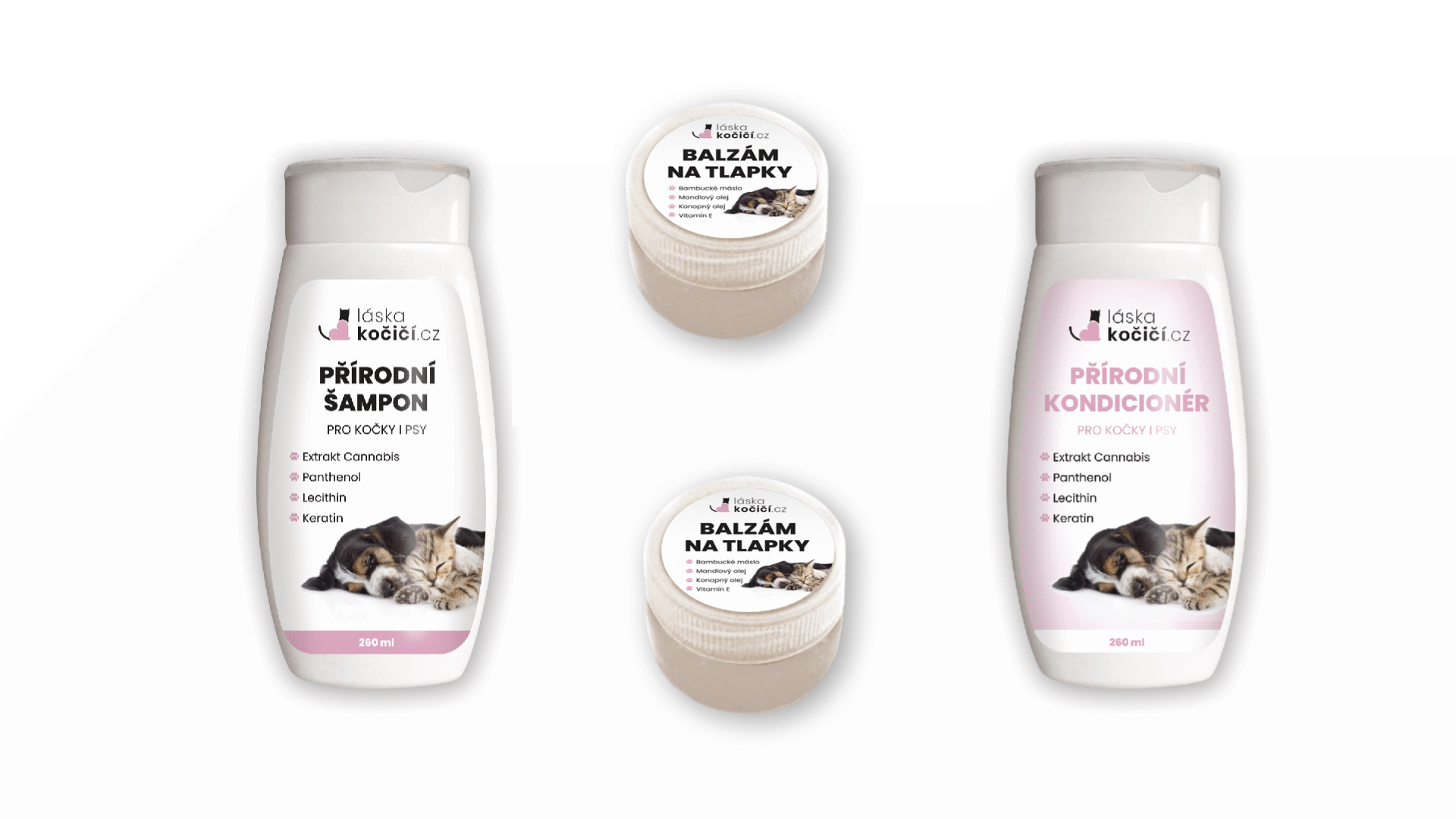 Proměňte nakupovaní pro vaše chlupaté přátele v luxusní zážitek s naší kosmetickou sadou, která obsahuje šampon, kondicionér a dva balzámy na tlapky pro kočky a pejsky.