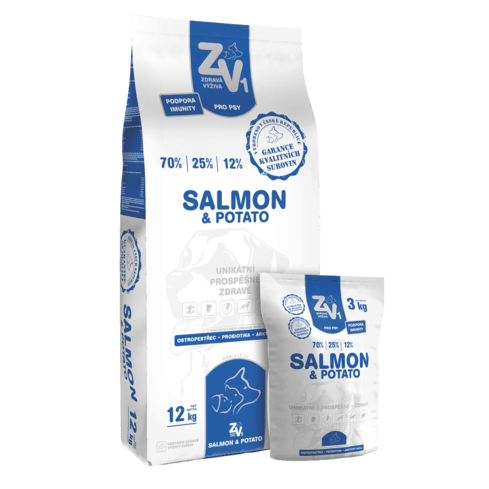 Krmivo ZV1 Salmon & Potato je vhodné pro dospělé psy všech plemen včetně březích a kojících fen.