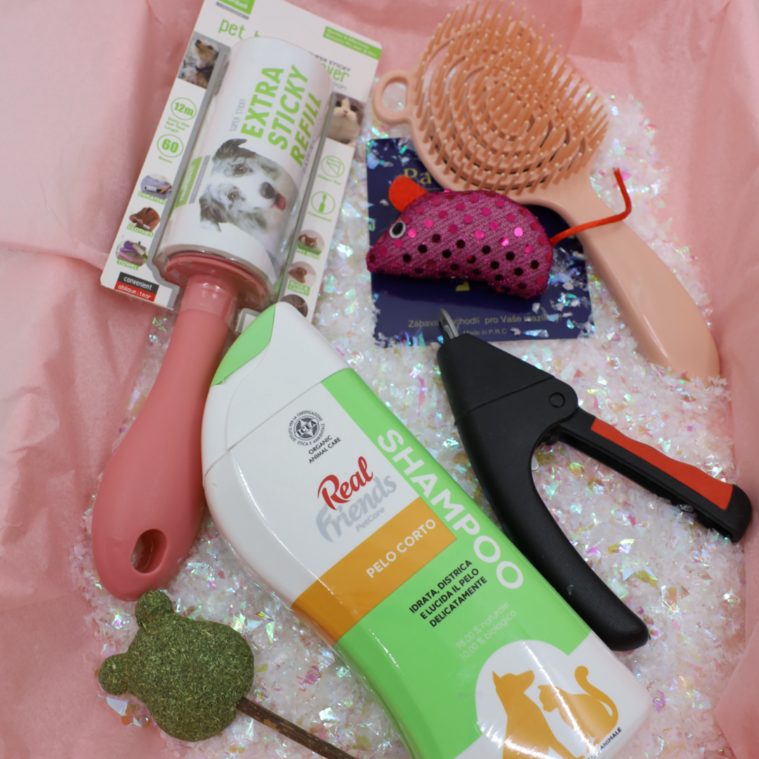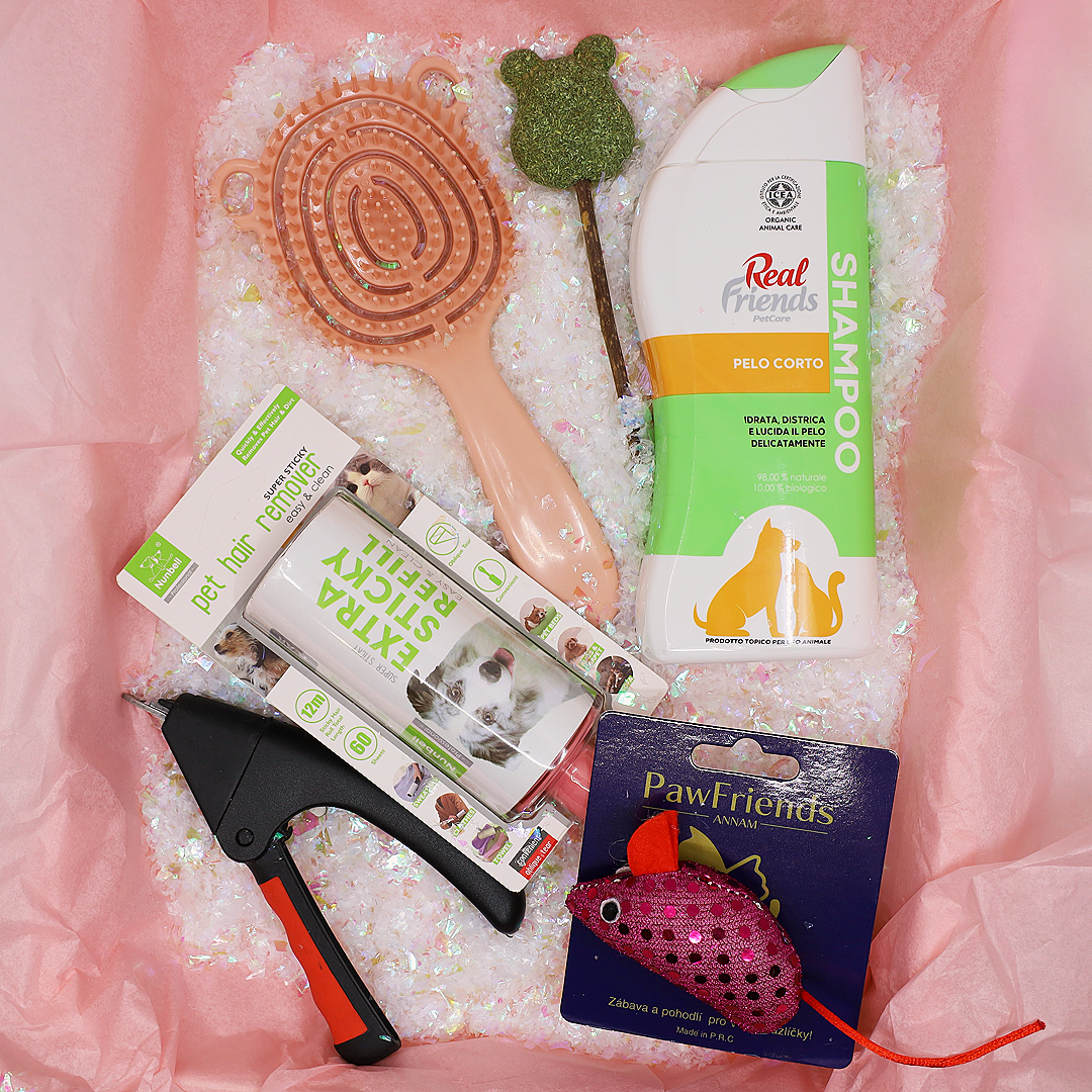 Tato vánoční sada byla vytvořena pro všechny krátkosrsté kočky a kocoury, kteří chtějí o svátcích zářit lesklou srstí a sbírat komplimenty na kožíšek, nikoli na každé návštěvě zanechat chlupy. Najdeš v ní přírodní šetrný šampon na krátkou srst, který vyčistí kožíšek do posledního chloupku a zanechá ho hebký a voňavý, kvalitní kartáč pro dokonalé vyčesání, kleštičky na drápky pro bezpečné manikúrové rituály a samozřejmě i hračku se šantou, která promění česání v zábavu. Na závěr přidáváme váleček, který zachrání tvůj outfit před kočičí módní kolekcí „Chlup všude 2025 i v 2026“.